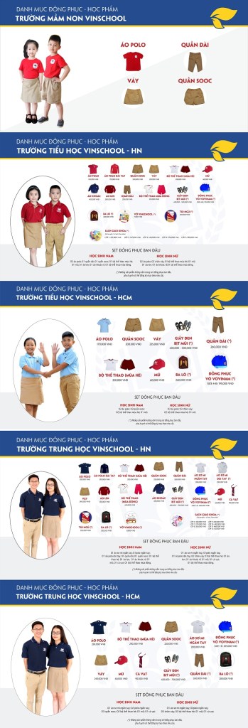 ÁO ĐỒNG PHỤC TẠI VINSCHOOL CHIA LÀM MẤY BẬC?